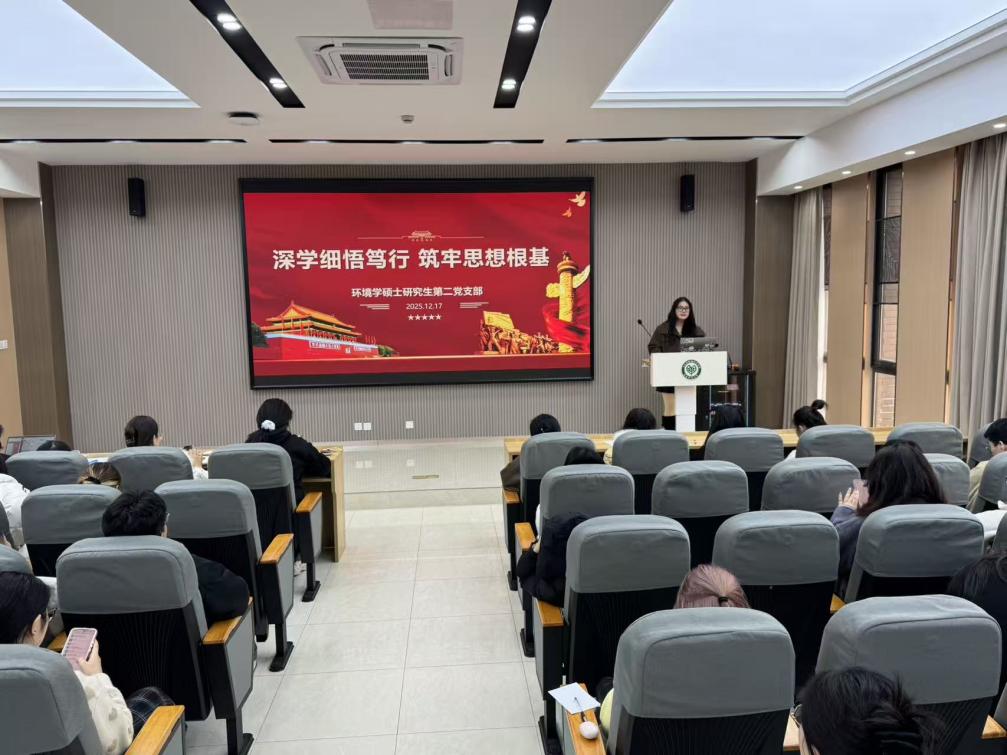 • 为把学习贯彻习近平新时代中国特色社会主义思想、习近平总书记最新重要讲话精神同组织学习《习近平谈治国理政》第五卷结合起来,坚持读原著、学原文、悟原理,切实做到学思用贯通、知信行统一,生环学院环境学硕士研究生第二党支部于2025年12月17日下午组织开展了以“深学细悟笃行 筑牢思想根基”为主题的党日活动。活动围绕组织学习《习近平谈治国理政》第五卷重要内容展开。活动由支部书记徐寒雨主持,支部指导老师顾佳艳参加此次活动。活动伊始,支部党员曹甜利分享主题为“学细悟笃行 筑牢思想根基”的报告,主要内容包括:深刻认识学习的重要性与紧迫性、生态文明思想与科技自立自强、《习近平谈治国理政》第五卷深化理解以及研究