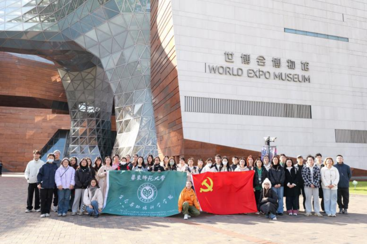 第一站,党员们到达上海世博会博物馆,同学们在世博会博物馆前进行了合影留念,为这次特别的行走党课活动留下了珍贵的记忆。随后,支部讲解员为大家介绍了世博会的历史背景、上海世博会博物馆的重要意义、建筑布局与展出内容等。