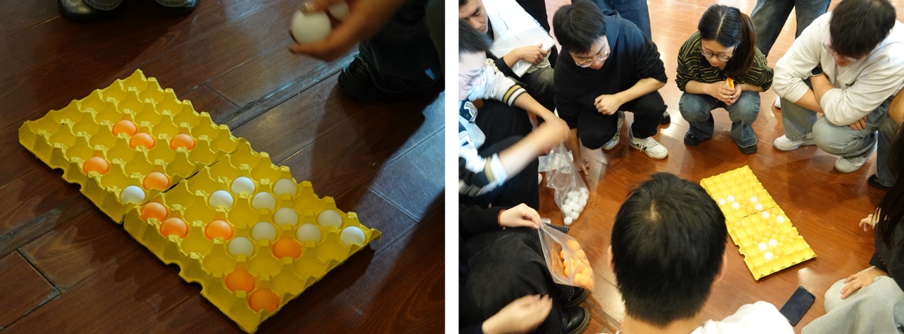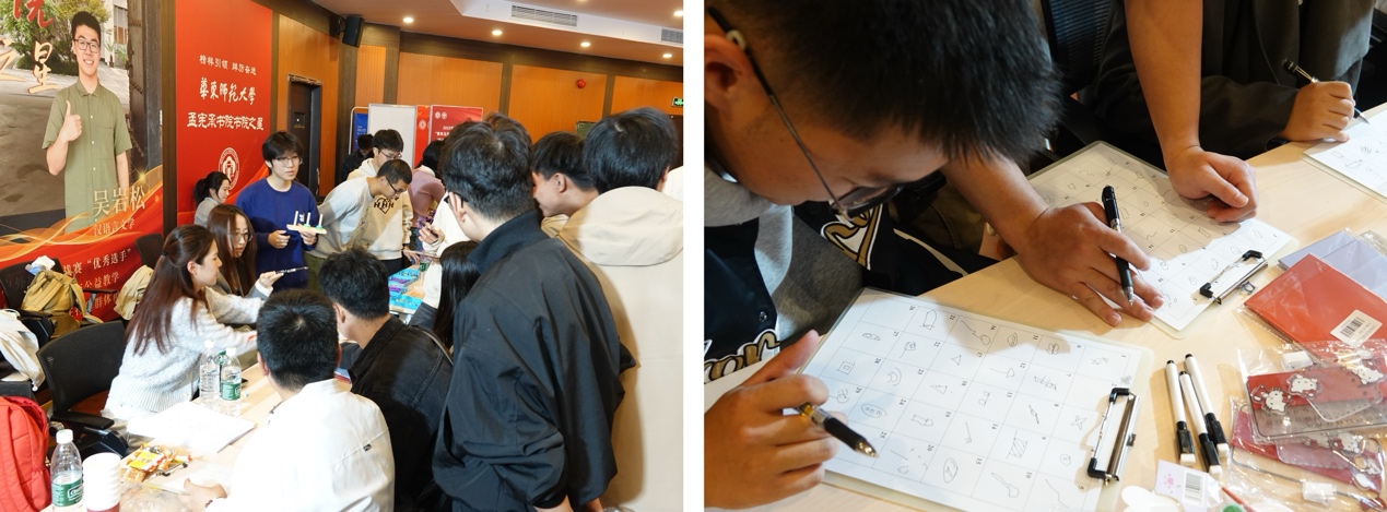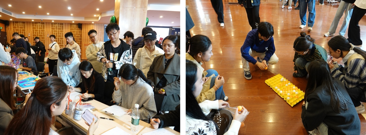 活动伊始,各学院同学通过小组破冰游戏迅速拉近距离,现场气氛轻松活跃。随着破冰游戏带来的阵阵欢笑,同学们之间的距离悄然拉近。在自由组队探索环节,各学院精心准备的互动项目成为大家交流的纽带。八叉书库 的“乒乓球五子棋”和“我画我猜”区域欢声不断;与此同时,其他学院的摊位也充满了吸引力,无论是动手实践还是脑力激荡,都让同学们满怀好奇地尝试与体验。整个会场流淌着轻松与愉悦,展现着师大校园多元共融的生动景象。