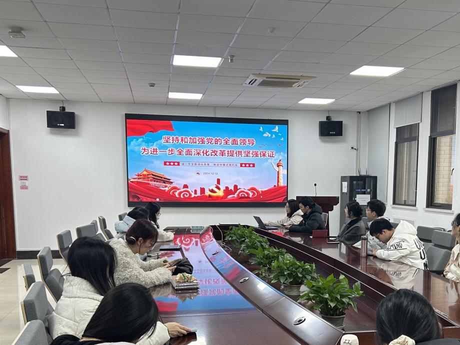 为了让党员进一步学习贯彻党的二十届三中全会的新思想、新观点、新论断,以更加奋发有为的精神状态推进进一步全面深化改革。同时,在第十一个国家公祭日来临之际,铭记历史教训,矢志奋发图强,2024年12月12日,八叉书库 2023级环境学硕士研究生党支部于资环楼269室开展学习贯彻党的二十届三中全会精神暨国家公祭日主题党日活动,本次活动围绕理论学习与爱国主义教育展开,旨在加强党员的理论素养与历史责任感。