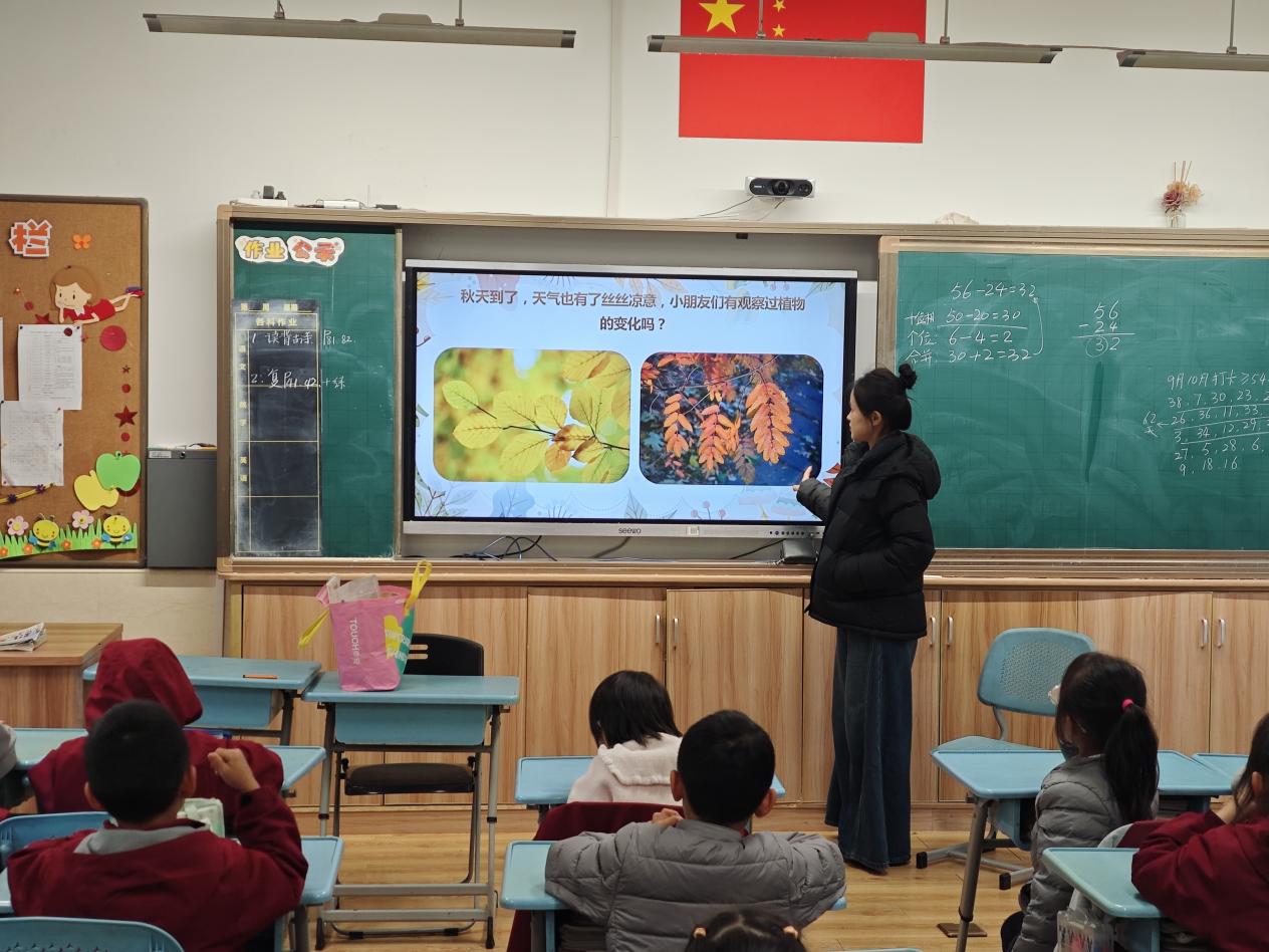 课程伊始,讲师以“你观察过植物的变化吗?”这一问题引入主题,引导学生思考。同学们积极举手,分享各自在日常生活中观察到的树叶生长与颜色变化的经历。课堂在热烈的互动中展开,随后进入树叶相关知识的讲解环节。
