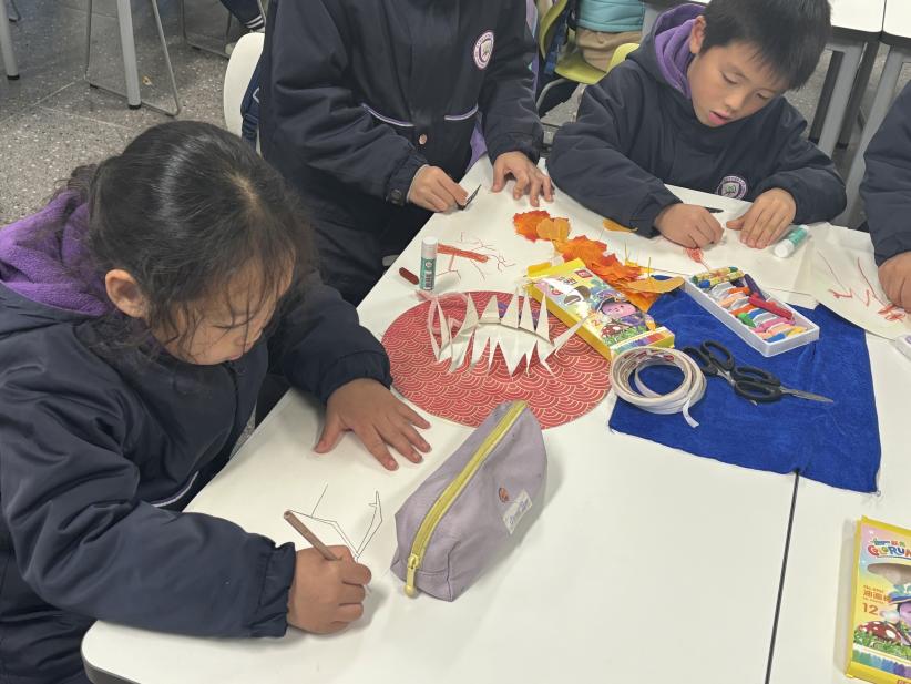 课程最后,学生在讲师的指导下,按照“外形观察—叶脉辨识—装饰设计—剪贴制作”的步骤,利用收集的树叶进行艺术创作。他们充分发挥想象力,进行勾勒与涂色,将自然灵感转化为独具个性的艺术作品。