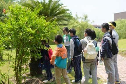带着任务卡与满满的求知欲,同学们前往校园核心生态秘境--生态岛。沿途,鸡爪槭的果实、八角金盘的叶片、红花檵木的变色新叶引发热烈讨论;面对苏铁,大家探讨“铁树开花”的常见误区。步入生态岛,枇杷的清香、茂密树荫与胡颓子、枫杨等原生植物交织成初夏画卷。学员分工观察记录,在亲身体验中深化对植物分类与生态适应的理解。