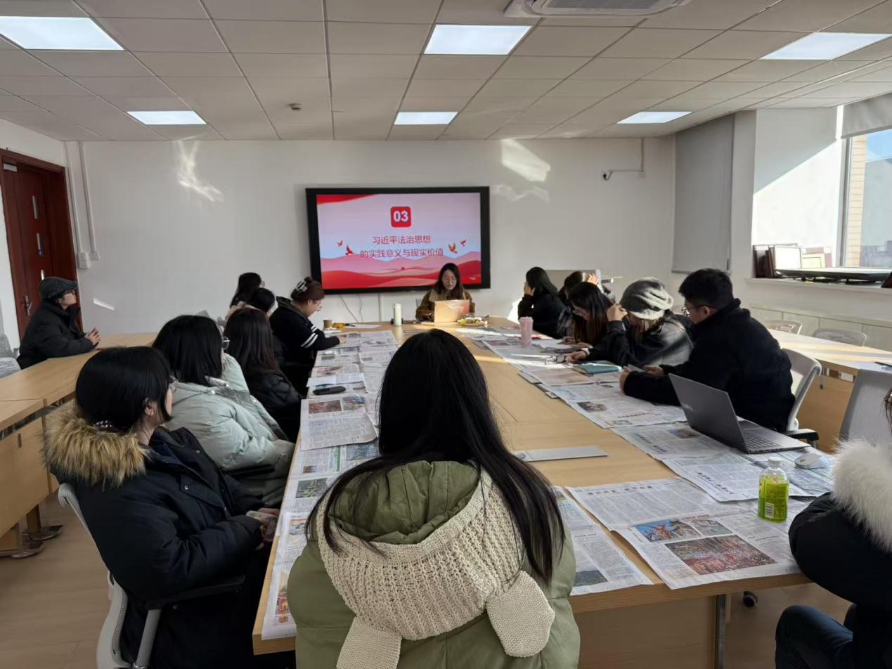 首先沈倩倪和向韦悯向大家分享了学习内容。内容围绕习近平法治思想的形成背景、理论渊源、核心体系以及实践意义展开,全面阐释了该思想的理论深度与现实价值。通过讲解“全面依法治国”“人民主体地位”等核心理念,大家深刻认识到法治在国家治理体系和治理能力现代化中的重要作用。此外,特别强调了习近平法治思想的体系化建设,包括法律规范体系、法治实施体系、法治监督体系、法治保障体系和党内法规体系等内容,剖析了这些体系对法治国家、法治政府和法治社会一体化建设的支撑作用。活动还结合实际案例,深入探讨了法治思想在立法完善、司法公正和全民守法等方面的具体应用。