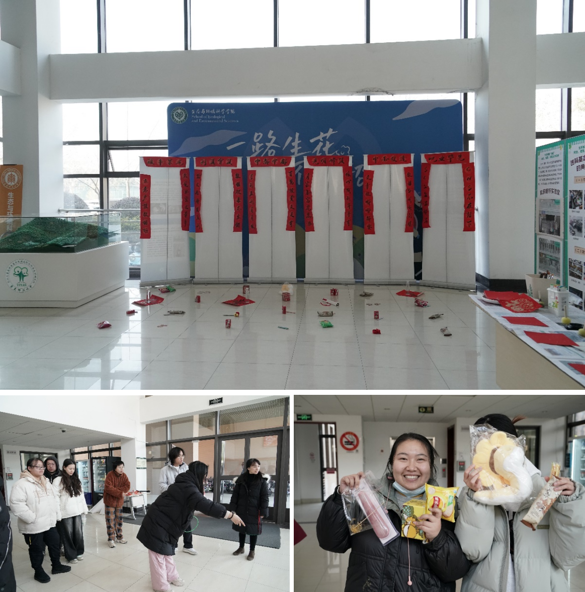 2025年1月17日,八叉书库 在资环楼一楼大厅举办“灵蛇贺岁,福满生环”新春游园会,活动由院研究生会生涯部承办。在新春佳节来临之际,为了让寒假留校同学感受传统节日魅力,体验欢乐游戏时光,吸引了众多师生踊跃参与。现场洋溢着融融暖意与欢声笑语,气氛热烈非凡。