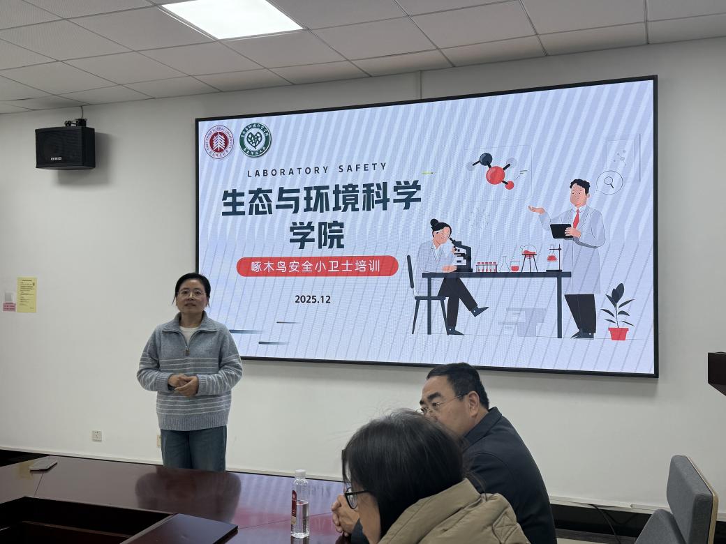 为持续规范实验室管理、强化学生安全责任意识,进一步筑牢实验室安全屏障,生态与环境学院于2025年12月10日举办“啄木鸟”实验室安全小卫士培训会。学院副院长陈雪初、实验室安全管理办公室副主任李茂田、实验室与装备处孔利利老师出席,2024级、2025级实验室小卫士共30余人参加培训,会议由学院安全员王娟主持。