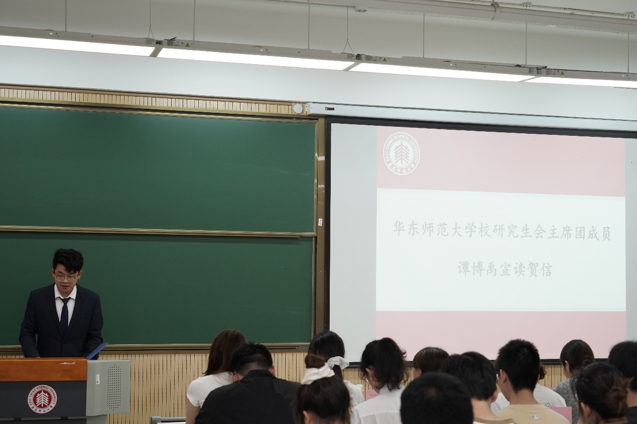 校研会主席团成员谭博禹宣读贺信