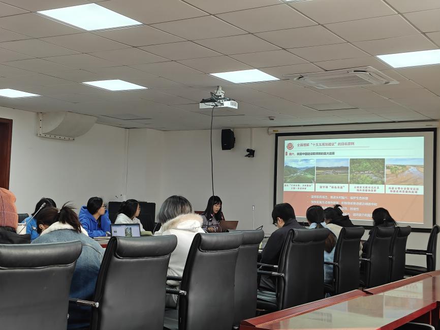 本次组织生活聚焦党的二十届四中全会精神与“十五五”规划建议,吴颖同志系统解读了全会召开的时代背景、重大意义与主要内容。她提到,2025年是“十四五”规划收官之年,也是谋划“十五五”发展的关键节点。二十届四中全会审议通过的《中共中央关于制定国民经济和社会发展第十五个五年规划的建议》,为今后5年乃至更长时期我国经济社会发展提供了行动指南。此外,吴颖同志结合生态学专业特色,强调党员应立足学科、服务国家战略,在推进绿色发展、建设美丽中国中发挥先锋模范作用。