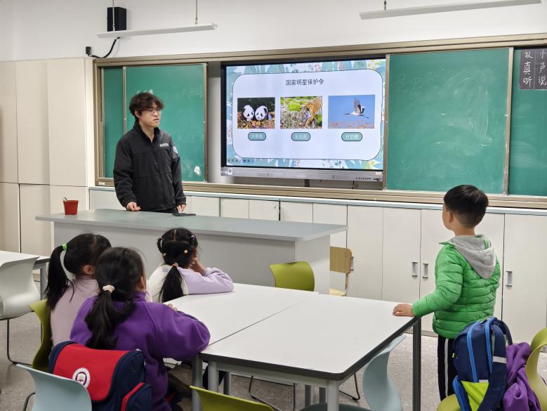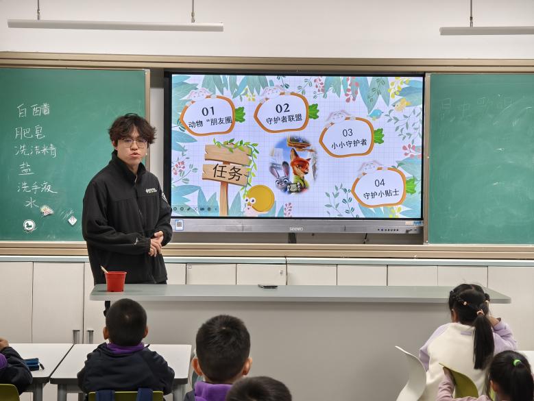2025年12月9日、10日下午,八叉书库 生态环境小课堂讲师团、研会秘书部的成员前往八叉书库 附属紫竹小学和永德学校,以《疯狂动物城》为灵感,开展主题为“守护动物城:保护我们的自然伙伴”的环教课,旨在引导小学生认识身边的野生动物,树立动物保护意识。担任本次课程的讲师为刘启元、张君宝和夏妍妍同学。