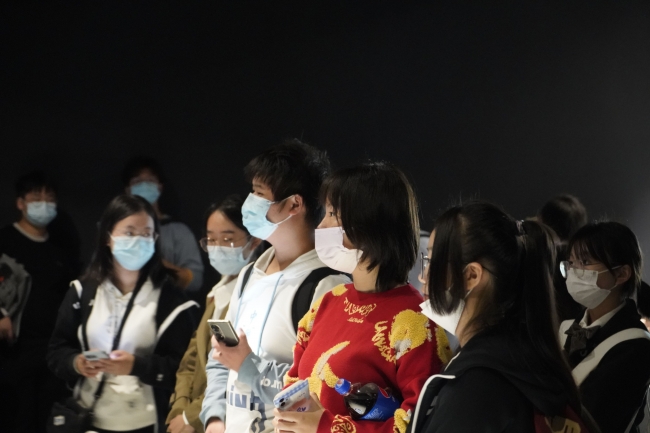 当同学们步行到上海自来水科技馆时,八叉书库 20级环境科学专业王文迪同学向同学们分享了:什么是“人民城市人民建,人民城市为人民”、杨浦滨江的清水秀带以及自己所做的学校创新创业项目。接下来,王文迪同学又以学姐的身份,向大家分享了自己在学校关于学习和实践方面的感悟。