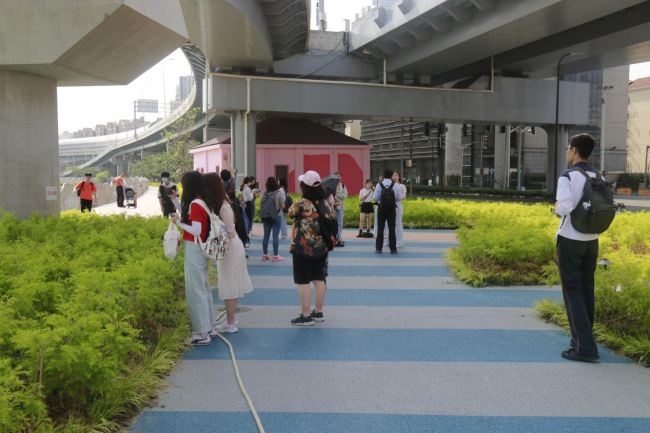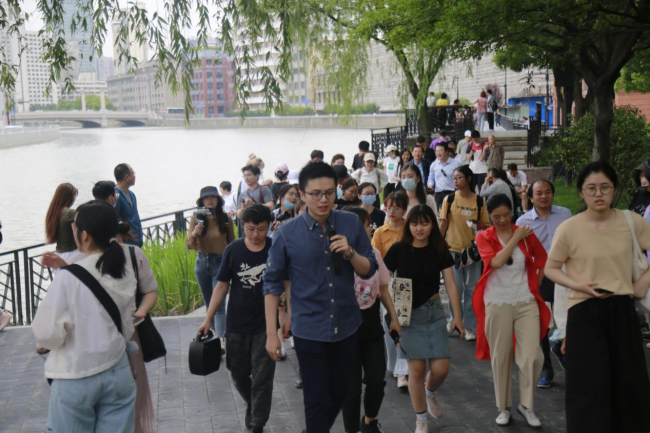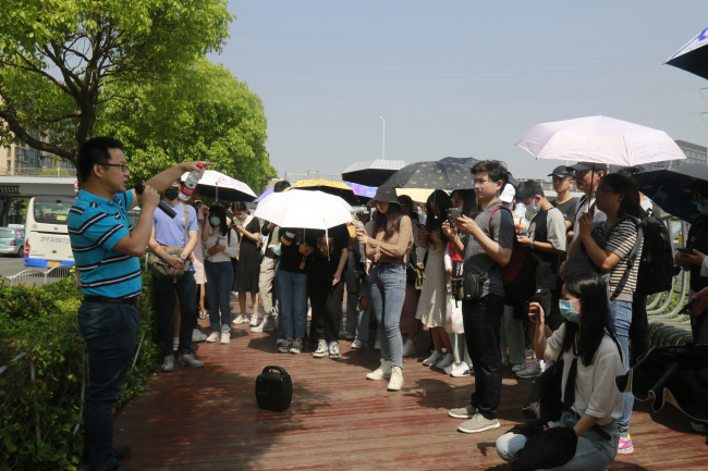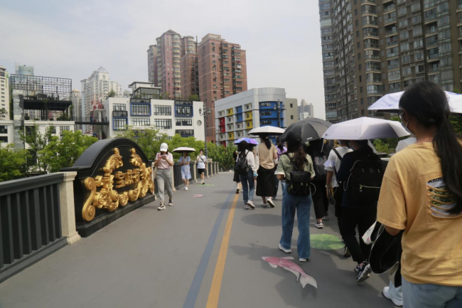 上午行程结束后,同学们原地解散,自行吃午餐,“行走的苏州河”校外实践活动进入中午的一小时休息时间。