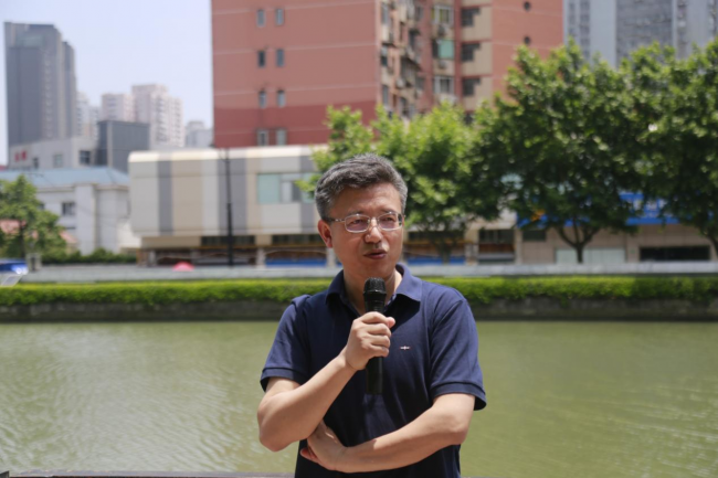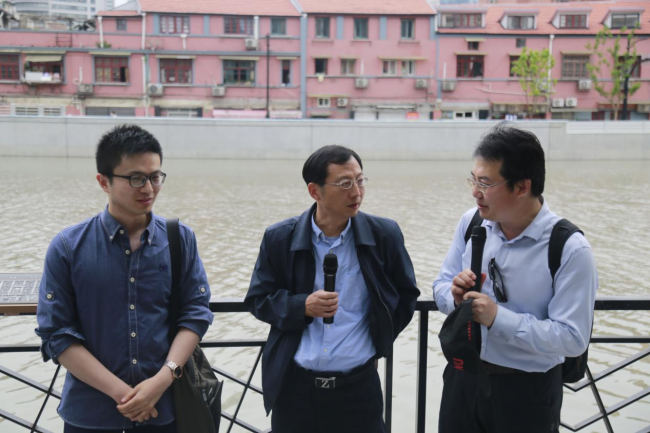 上午12点,同学们从万航渡路的苏州河长宁区河岸行走至光复西路的苏州河普陀区河岸,陈小勇院长早已在此处等候同学们。陈小勇院长以自身的学习研究经历、苏州河生态环境治理及河流生态恢复三个方面讲解了苏州河的生态修复过程,向同学们举例对比了苏州河的生态治理前后对周边居民的影响、生态环境改善会对周围的社会服务功能产生何种影响。在提问环节中,陈小勇老师以院长的身份建议同学们不仅要好好学习生态、环境专业的相关知识,还要提升自身的其他素养以满足生态环境专业所需的复杂的知识体系,更要抱有家国情怀,为祖国的生态文明建设山出一份力。