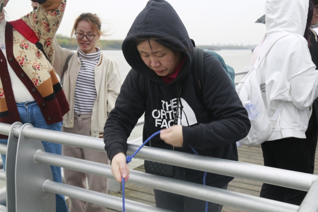 讲解结束后,大家对黄浦江此段的水质进行了测量。