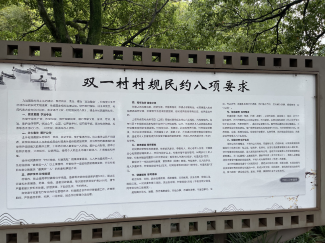 双一村有着极为突出的管理智慧。村庄注重生态环境保护和可持续发展,通过合理规划和管理,实现了经济繁荣与生态平衡的良好结合。在“’两山转化‘与生态产品价值实现路径思考”报告会上,赵明富老师阐述了浙江省为生态产品价值的实现做出的诸多探索,如以“金融创新”强化驱动力”等。如赵老师所言,村庄发展农业、旅游和文化产业,提供了多元化的就业机会,增加了村民的收入。同时,村庄注重社区建设和民主管理,通过居民自治组织、民主决策等方式,激发了居民的参与热情,形成了和谐的社区氛围。
