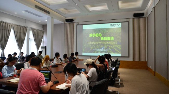 在保护的基础上,西溪湿地成功实现了生态效益、社会效益与经济效益的共赢。但如何在有限的生态承载力下,做好生物多样性保护工作?在西溪湿地会议厅,管理部门相关负责人张巍为同学们带来了关于西溪湿地建设的生动一课。在课后,同学们也纷纷提出自己的困惑,同时也积极发表自己的见解,与老师们开展了一场热烈的讨论。