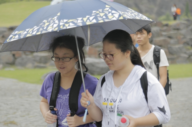 绵绵细雨,也淋不走大家的好心情,一把把小花伞凑在一起,成了辰山植物园一道美丽的风景