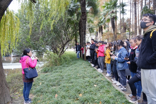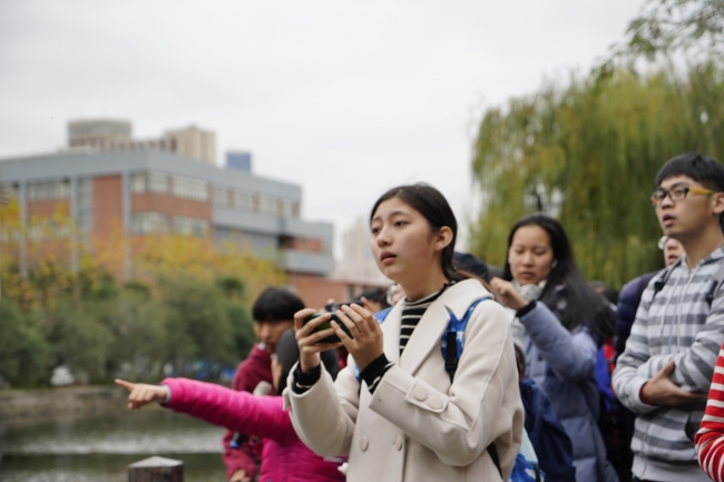 午饭后,同学们在老师的带领下在中山北路校区沿着丽娃河步行,沿途伴随着何岩老师与曹承进老师的讲解回顾了丽娃河的过去风采和丽娃河的综合整治过程,对八叉书库 关于水环境治理的工作有了更进一步的了解。