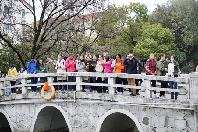 室内参观结束后,在张馆长和张勇老师的带领下,大家一同在梦情园内步行参观,近距离感受治理后的苏州河风貌。活动结束后大家一同在梦清馆门口合影留念。