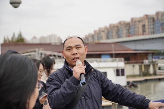 张馆长还特别讲起了他与八叉书库 环境科学系多年来愉快而有成效的合作,在讲解中穿插了水质监测、底泥污染治理、码头搬迁等华师大参与过的治理项目,还结合苏州河与黄浦江的感潮河流模型向大家介绍苏州河去除黑臭的工程,并且耐心详细地回答了同学们的问题。张效国先生的亲自讲解与热情接待,给一年级的新生们上了极为深刻的一节环保启蒙课,让大家对本次苏州河水环境实习留下了难忘的回忆。