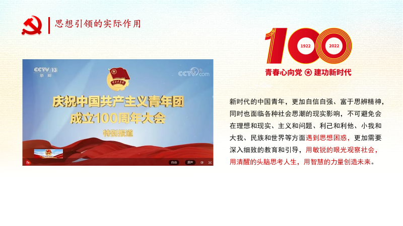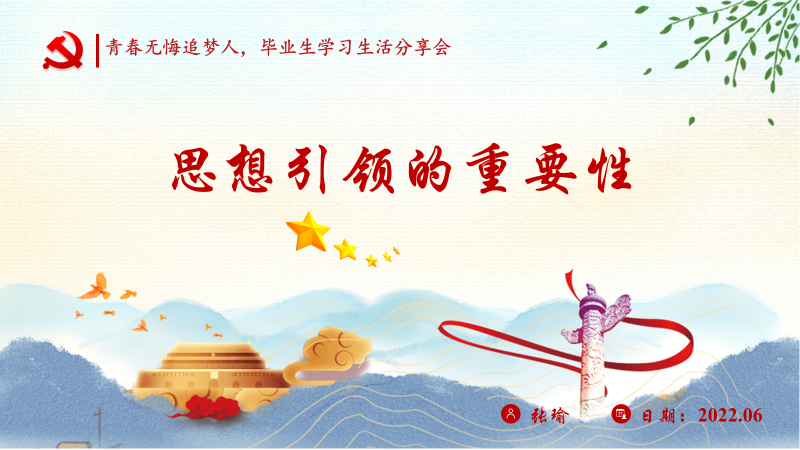 张瑜同学分享的主题是“思想引领的重要性”。她从习近平总书记在庆祝中国共产主义青年团成立100周年大会上的讲话出发,谈到新时代中国青年不可避免的会面临各种思潮的现实影响,会遇到各种思想困惑,需要更加细致的教育和引导。正确的思想引领可以帮助青年观察社会、用清醒的头脑思考人生、用智慧的力量创造未来。研究生在求学过程中会遇到各种各样的困难,我们需要主动向导师、课题组的同学以及周边的其他朋友寻求帮助,并向他们学习看待世界的方式、解决问题的思路、面对人生的态度等,使自己不断提高。
