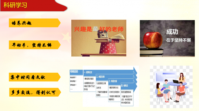 活动的第二部分是毕业生党员交流会。慈航同学结合科研和党支部工作的收获,拟定的分享主题为 “不忘初心,砥砺前行”。对于科研,她分享了四点心得:一是科研兴趣,兴趣是最好的老师,热爱科研才能快乐地坚持下去;二是选好研究话题,尽早把关键技术和方法学会,开展实验;三是要集中时间看文献,多看文献;四是要多参加学术活动,积极展示自己的研究成果,多多交流。第二方面,她分享说支部活动和支部工作可促使大家成长,党支部活动可以加强理论知识学习,培养党员情怀,坚定党员信念。她鼓励大家积极参与支部的工作和活动,这样能得到更好的锻炼和成长。最后她希望大家都不忘入党的初心,不忘科研的初心,不忘读博的初心,勇敢向前走!