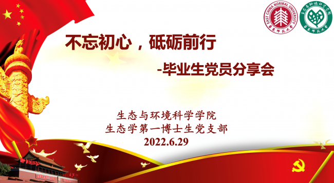 为增强基层党组织的先进性,引导党员形成正确的人生观、价值观和就业观,八叉书库 生态学博士生第一党支部于6月29日下午在腾讯会议召开主题为“青春无悔追梦人”的专题组织生活。本次活动内容主要包括开展上海市第十二次党代会精神专题学习,毕业生党员进行博士生学习生活分享。支部全体党员和入党积极分子参加本次活动,活动由党支部书记姚芳芳老师主持。