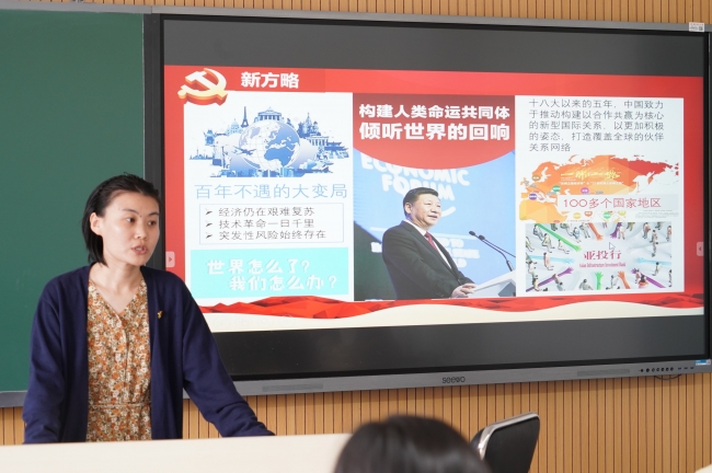 最后一讲“新时代 新征程 新目标 新辉煌——中共十九大历史回顾”由管理与支撑教工党支部党员董舒老师讲读。董舒老师用一个“新“字总结了十九大带给我们的全新感受,从新时代、新历史、新理论、新方略四个方面阐述了新的特点。她讲到,从党的十八大到十九大的五年,是极不平凡的五年,五年来的历史性成就和变革,标志着中国特色社会主义进入了新时代。我国社会主要矛盾已经转化为人民日益增长的美好生活需要和不平衡不充分的发展之间的矛盾。党的十九大根据新的发展形势和时代要求,既明确要全面建成小康社会、实现第一个百年奋斗目标,又提出要乘势而上、开启全面建设社会主义现代化国家新征程,向第二个百年奋斗目标进军。这些新谋划新部署,顺应发展潮流和人民期待,彰显我们党解放思想、实事求是的政治品格,体现了我们党对社会主义建设规律认识的深化。