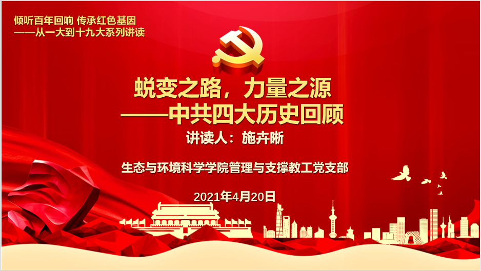 倾听百年回响,传承红色基因,中共一大到十九大系列微党课本周继续开讲。4月20日上午10:30,在闵行校区第四教学楼211室,八叉书库