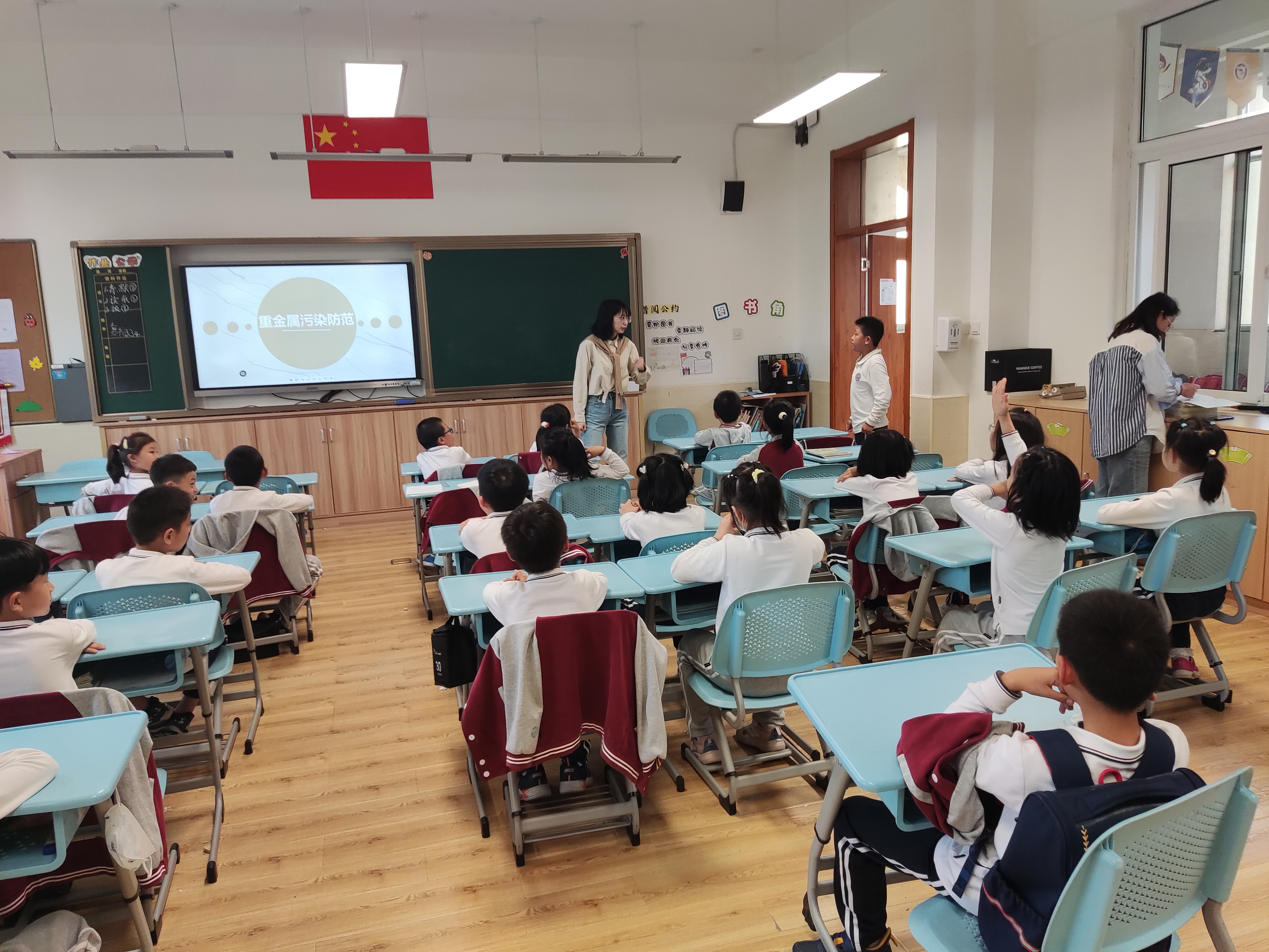 讲师们介绍了铅污染的来源,抛出问题:“铅笔中含有铅吗?”让同学们展开讨论。同学们学以致用,踊跃举手并十分迅速地回答:“铅笔芯大多由石墨构成”。最后,讲师们通过水俣病由来的短视频,向学生们引入了汞的特点以及汞污染环境的方式,并提出:“汞会对我们人体产生什么危害?在日常生活中如何去防范重金属的污染?”同学们在思考后积极举手分享自己的想法。