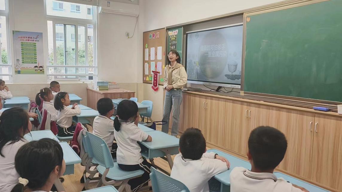 课程最后,讲师们向同学们示范了水银温度计摔碎时的应对方法,让孩子们对重金属污染有了更深层次的了解。通过本次的环教课,同学们不仅增长了金属类物品的分类小知识,还加强了对重金属污染的了解。希望他们可以把在课堂中学习到的知识运用在实际生活中,从自身做起,做一名积极的环保小卫士!