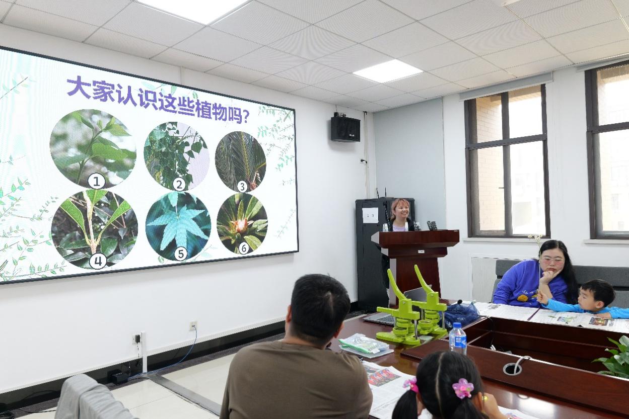 活动的第二站,小朋友们来到了资环楼269。小罗老师结合校园植物认知,为家长和小朋友们开展植物科普。小罗老师从植物认知互动开始,介绍了常见树木、常见花卉、不起眼的野花和入侵植物。一张张植物照片,不仅给我们带来了视觉上的“植物盛宴”,更是让小朋友们对身边的植物有了初步的了解,感受到了植物世界的奥秘。