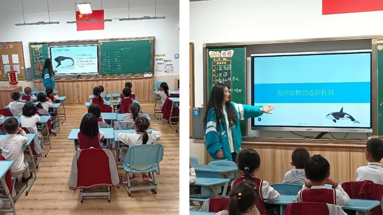 2023年11月7日、8日下午,生态与环境小课堂讲师团前往八叉书库 附属紫竹小学、永德实验小学开展环教课,主题为“海洋生态问题”,担任本次课程的讲师为顾思雨和唐逸倩同学。