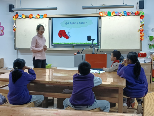 首先,讲师们通过一个问题引发了小朋友们的思考:“什么是城市生活垃圾?”在小朋友们的积极发言后,讲师们从城市生活垃圾的特点、危害以及处理方法三个方面为小朋友们详细地讲解了城市生活垃圾的特点。由于城市生活垃圾具有成分复杂、有机物含量高的特点,以及不同的垃圾具有焚烧、填埋等不同的处理方法,因此为了节约资源、提高垃圾利用率,垃圾分类就显得尤为重要。