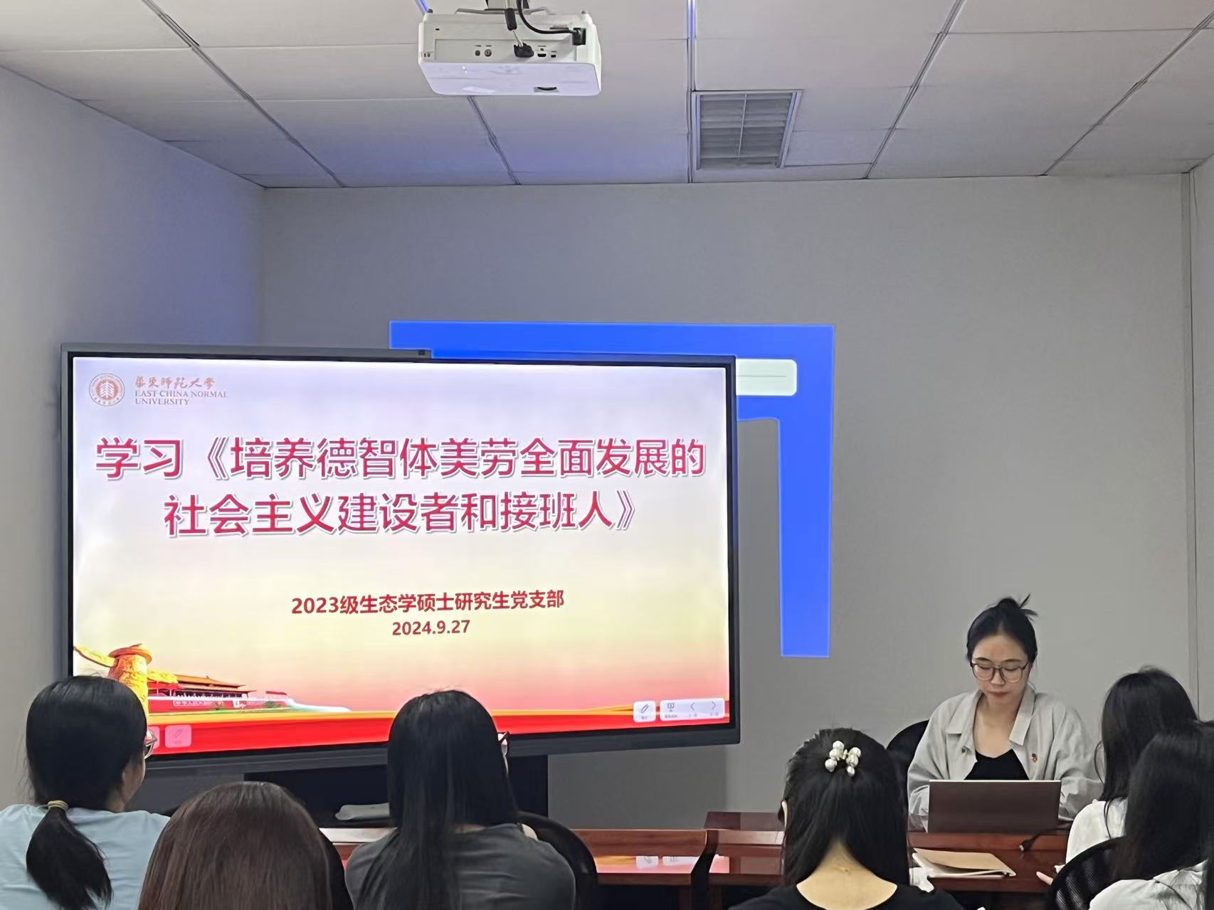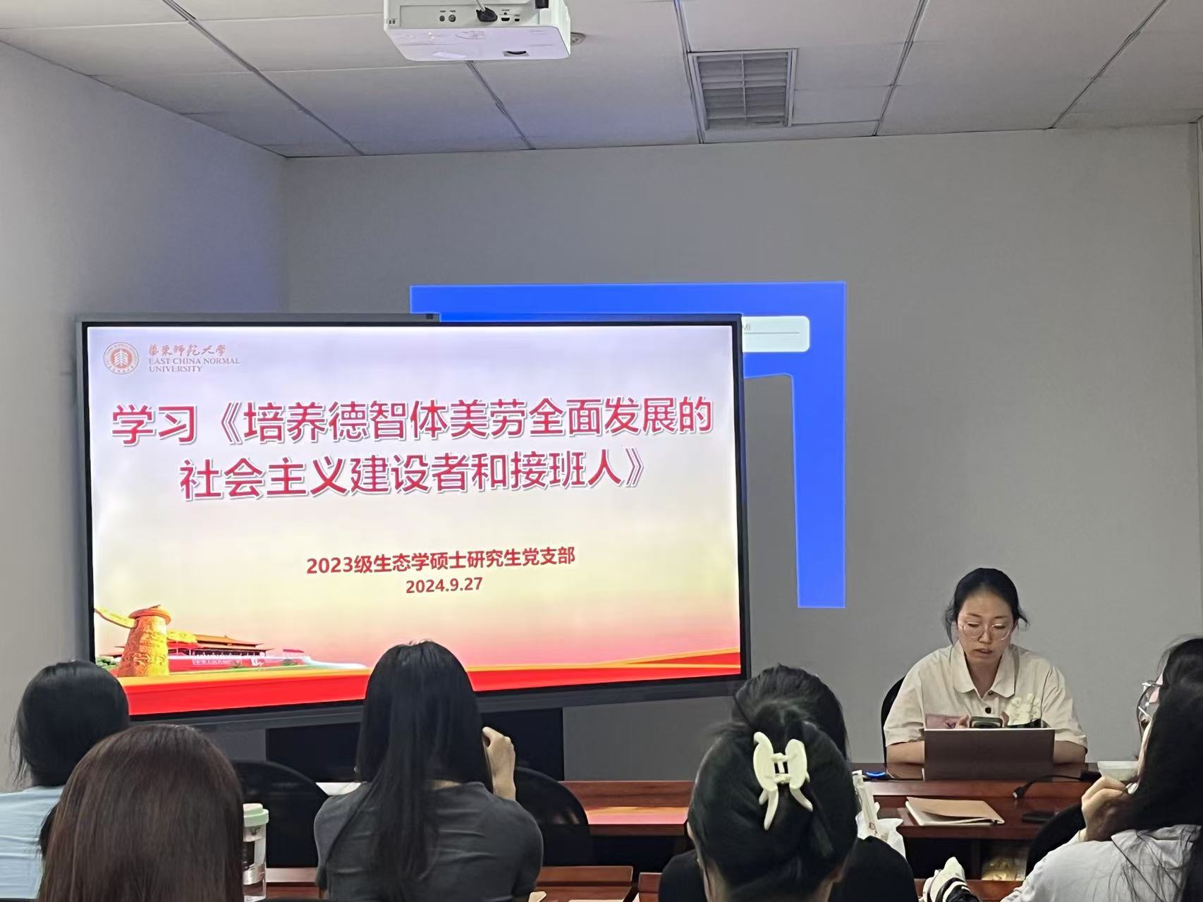 2023级生态学硕士研究生党支部召开学习《培养德智体美劳全面发展的社会主义建设者和接班人》专题组织生活,活动由第三党小组主持。