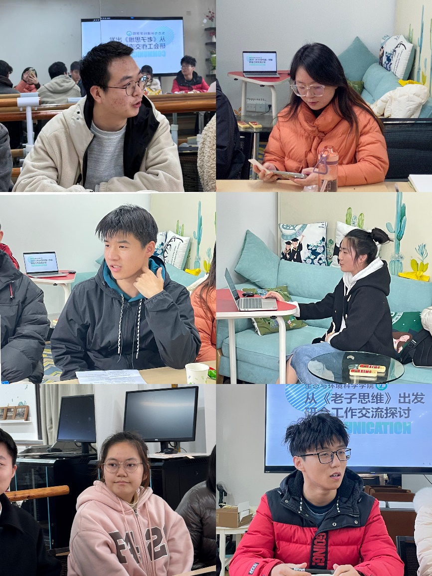 为普及量子思维,改进传统思维模式,激发学生组织创新管理潜能,2024年1月9日下午13:30,八叉书库 研究生会“体悟老子之“道”,共话创新未来”工作交流沙龙在资环楼146室举行。院党委副书记路葵、研会指导老师吴丹及第十届研会主席团成员、部门负责人参加本次活动。第十届研会主席团成员朱泓恺担任主持。