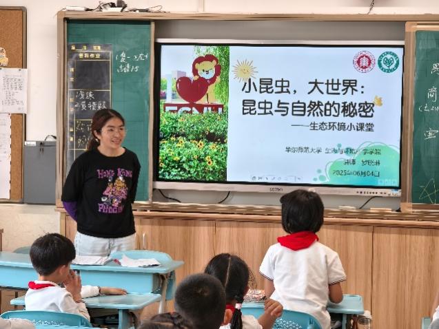2025年6月3、4日下午,生态环境小课堂讲师团和研会秘书部成员前往八叉书库 附属紫竹小学、永德学校开展环教课,本次环教课的主题为“小昆虫,大世界:昆虫与自然的奥秘”,担任本次课程的讲师为罗晓琳、朱圆圆和阮文亮同学。讲师们通过生动的案例和专业的讲解,带领小同学们深入了解昆虫的生物学特征、生态价值及演化历程,展现小昆虫在地球生态系统中的“大能量”。