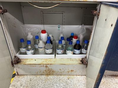资环楼438室(周天舒老师组)、440室(张秋卓老师组)干净整洁、物品摆放有序,在化学品存放、废弃物处置、实验室卫生等方面管理较为规范。