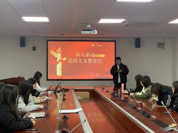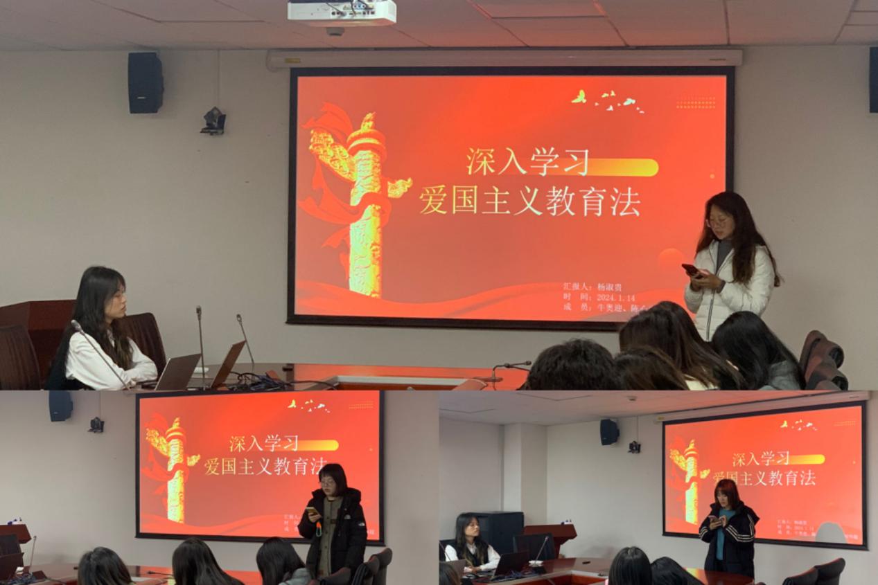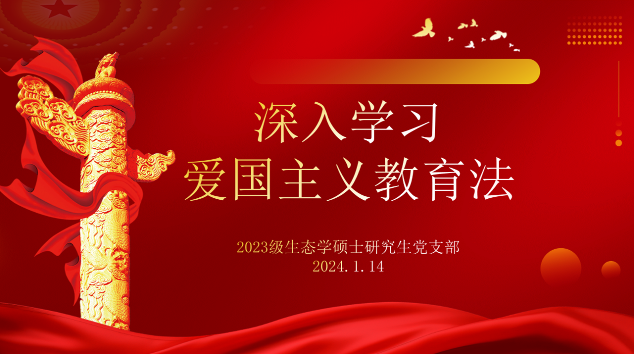 为深入学习贯彻十四届全国人大常委会第六次会议表决通过《中华人民共和国爱国主义教育法》,2024年1月14日,八叉书库 2023级生态学硕士研究生党支部于资环楼354室,开展以“深入法律学习 传承爱国精神”为主题的组织生活。本次活动包括“党小组分享”“个人分享”两个环节。活动由党支部第4党小组主持。