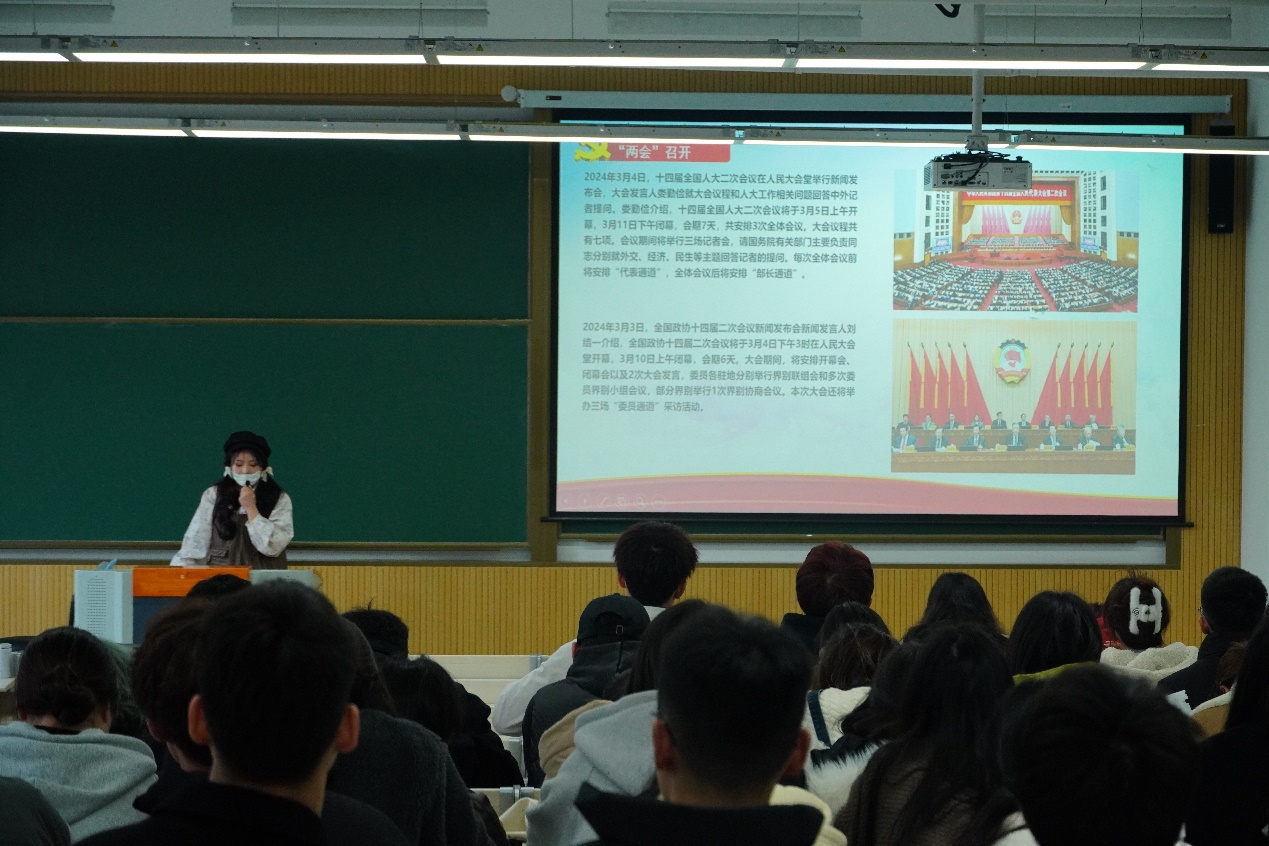 随后,张瑞瑞同学围绕“两会议程、政府工作报告和代表提议”三大核心议题,深入开展了两会主题学习活动。详细介绍了“两会”及其会议议程,解读了政府工作报告中的关键要点,帮助同学们提升对国家大事的关注度与理解力。同时,从代表们的提案中筛选出同学们关注的话题,引导大家深入讨论和思考,从而进一步增强同学们的大局意识与责任意识。