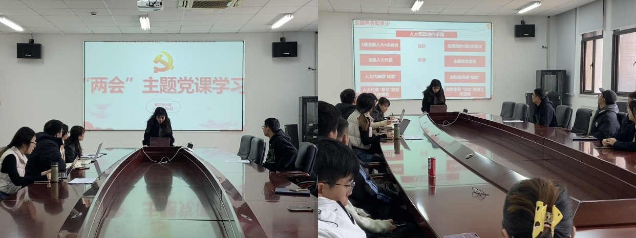 2021级环境学硕士研究生党支部于闵行校区资环楼269室开展专题组织生活。本次活动由第五党小组主持,主要包括时政要闻分享和“两会”主题党课学习两个部分,支部指导老师吴丹和全体党员到场参会。