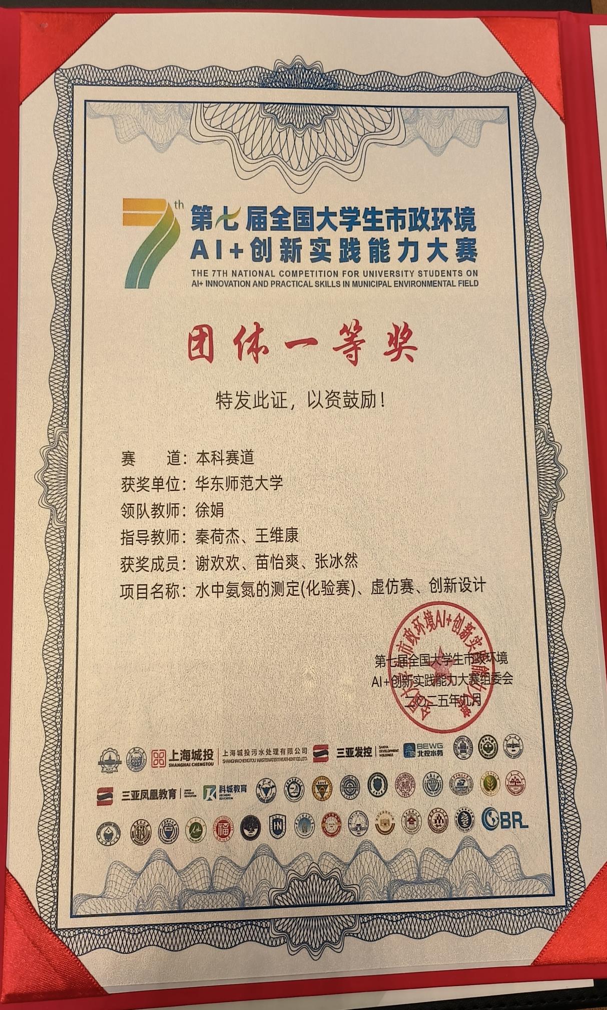 我校参赛队伍顺利晋级全国总决赛。八叉书库 2023级环境生态工程专业谢欢欢、苗怡爽和环境科学专业张冰然同学在决赛中发挥出色,成功斩获全国一等奖,创下我校在该项赛事中的历史最佳成绩。指导教师秦荷杰、王维康获评“金牌指导老师”。