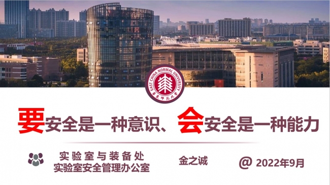 于2022年9月7日上午10:00在闵行校区第二教学楼231室举办2022级研究生新生教育之实验室安全教育专题讲座。讲座邀请校实验室与设备管理处、实验室安全管理办主任金之诚老师,以“要安全是一种意识,会安全是一种能力”为主题对实验室安全进行了详细讲解。学院2022级全体研究生同学参加本次讲座,辅导员路葵老师参加本次活动。